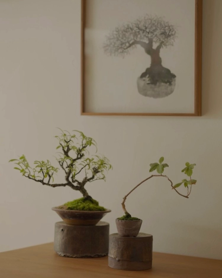 두 종류 모두 테이블, 선반에서 활용할 수 있는 소품 분재용 크기와 높이입니다.