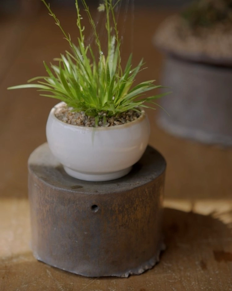 <물 보관 스탠드 WATER KEEPER STAND> 는 화분을 올려 마음 놓고 충분한 물을 줄 수 있는 역할을 합니다. 물은 단순한 수분 공급 외에도 뿌리의 원활한 호흡 작용을 도와 유해한 가스를 배출하는 역할을 한답니다. 받침에 물이 넘칠까 노심초사하던 지난 날을 잊고 매일 매일의 분재 생활에 반짝임을 더해보세요!