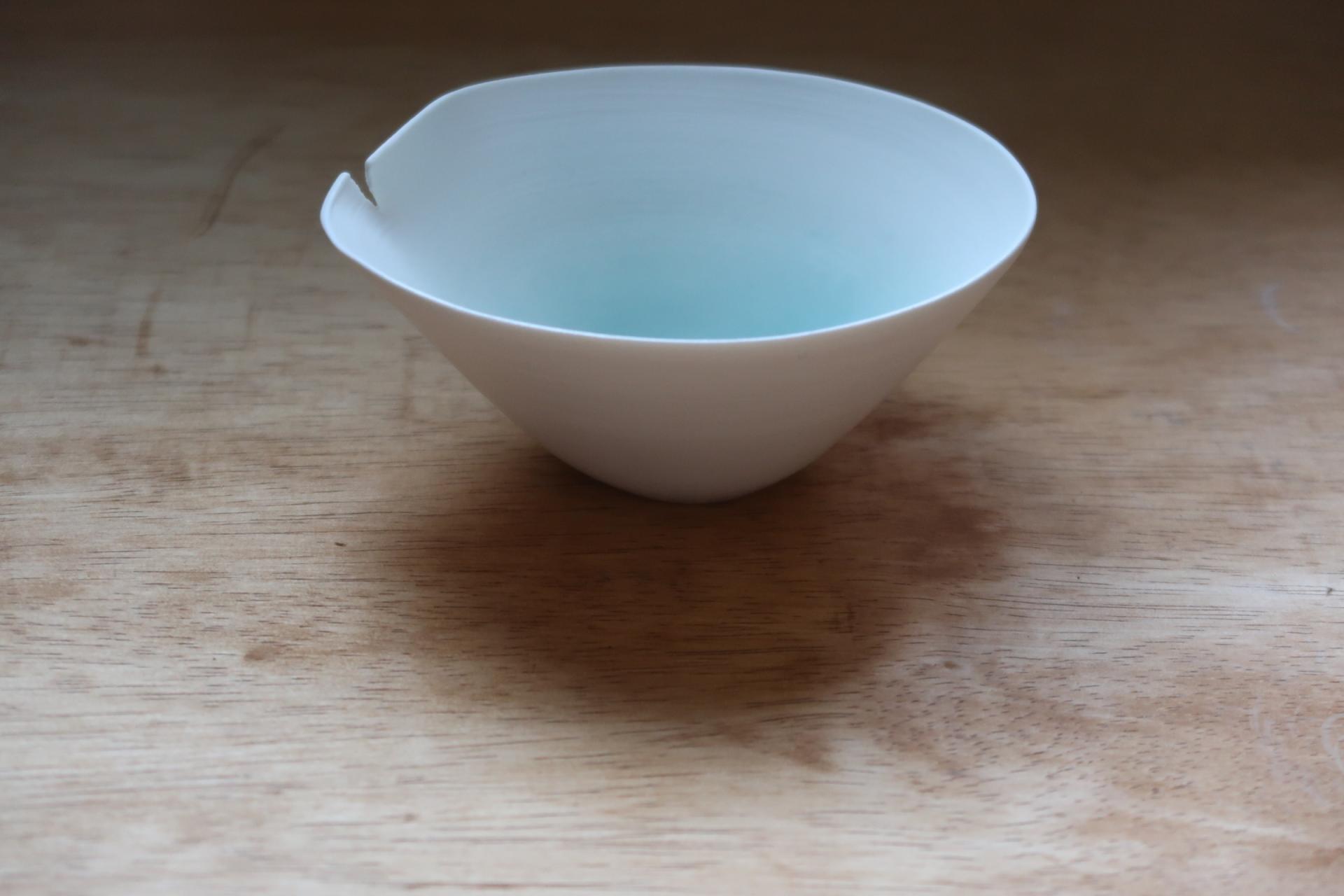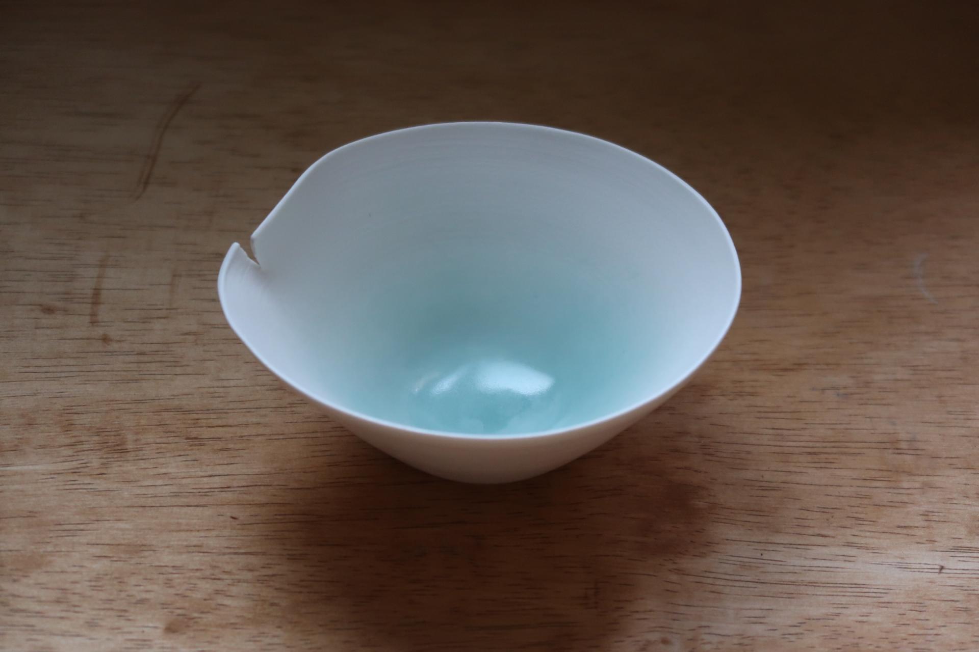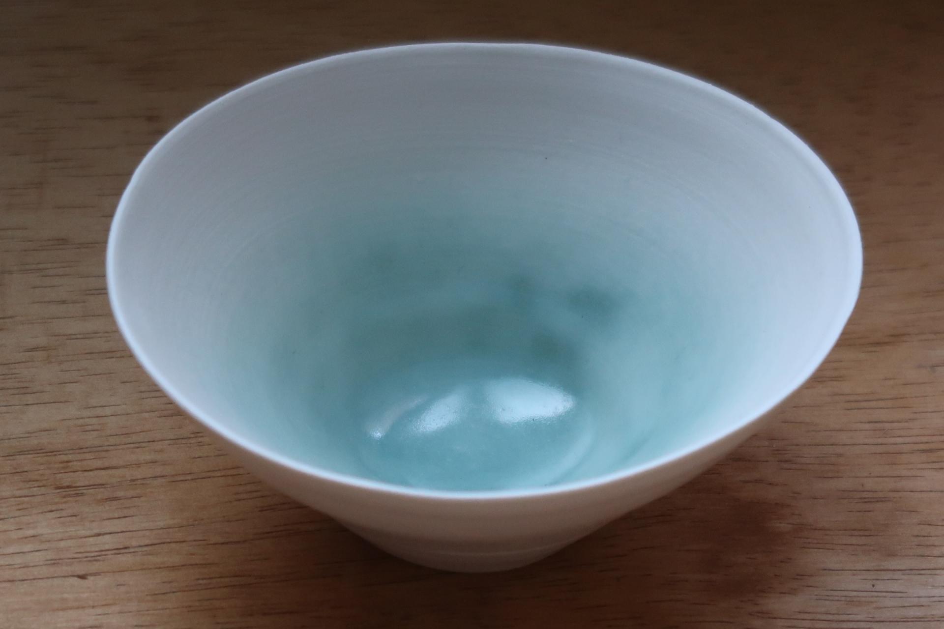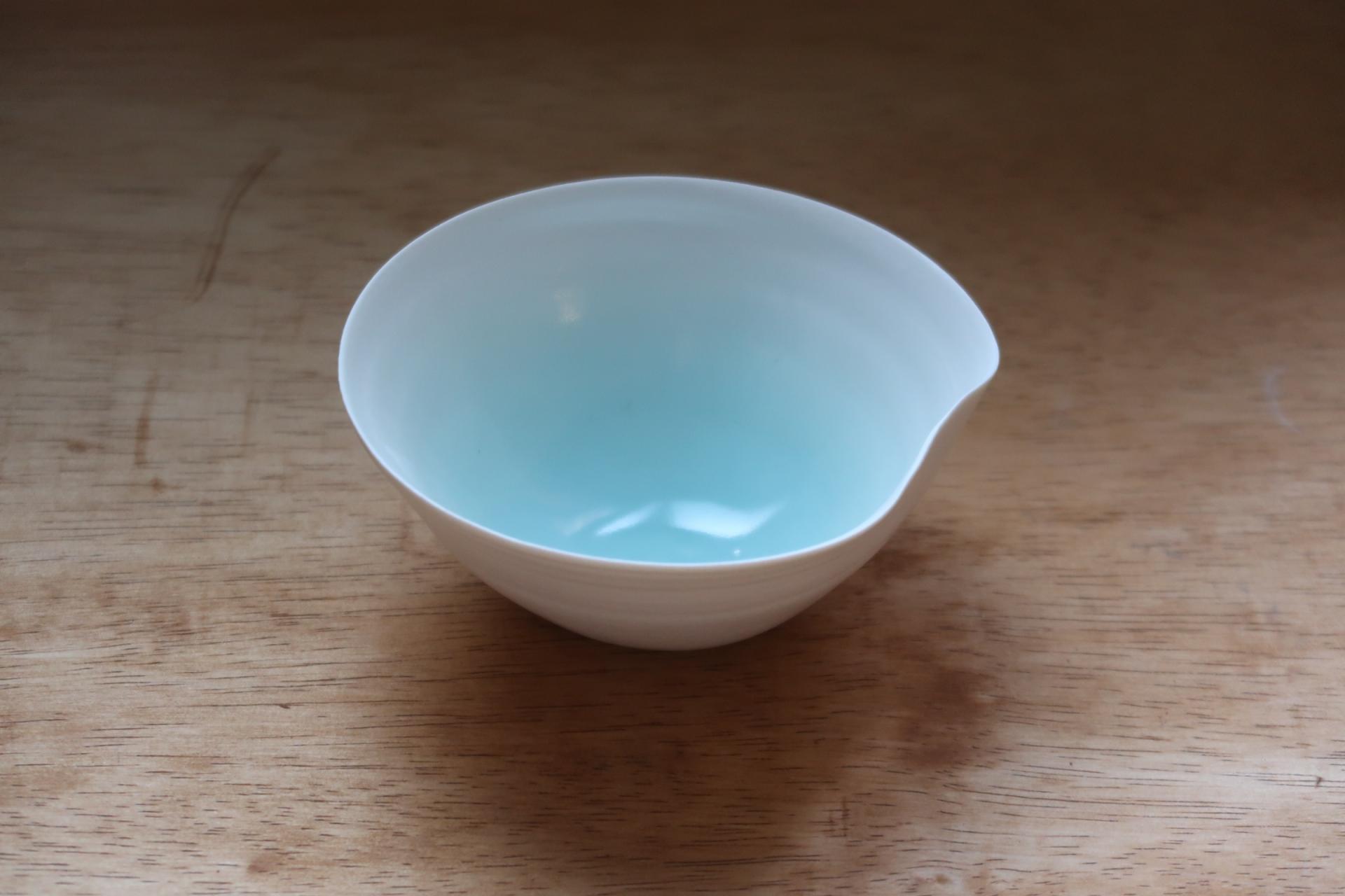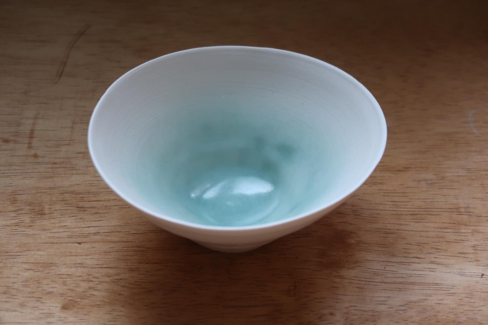맑은 청색 유약이 안쪽에 은은히 스며 있어, 담기는 대상에 따라 다른 표정을 보여줍니다.