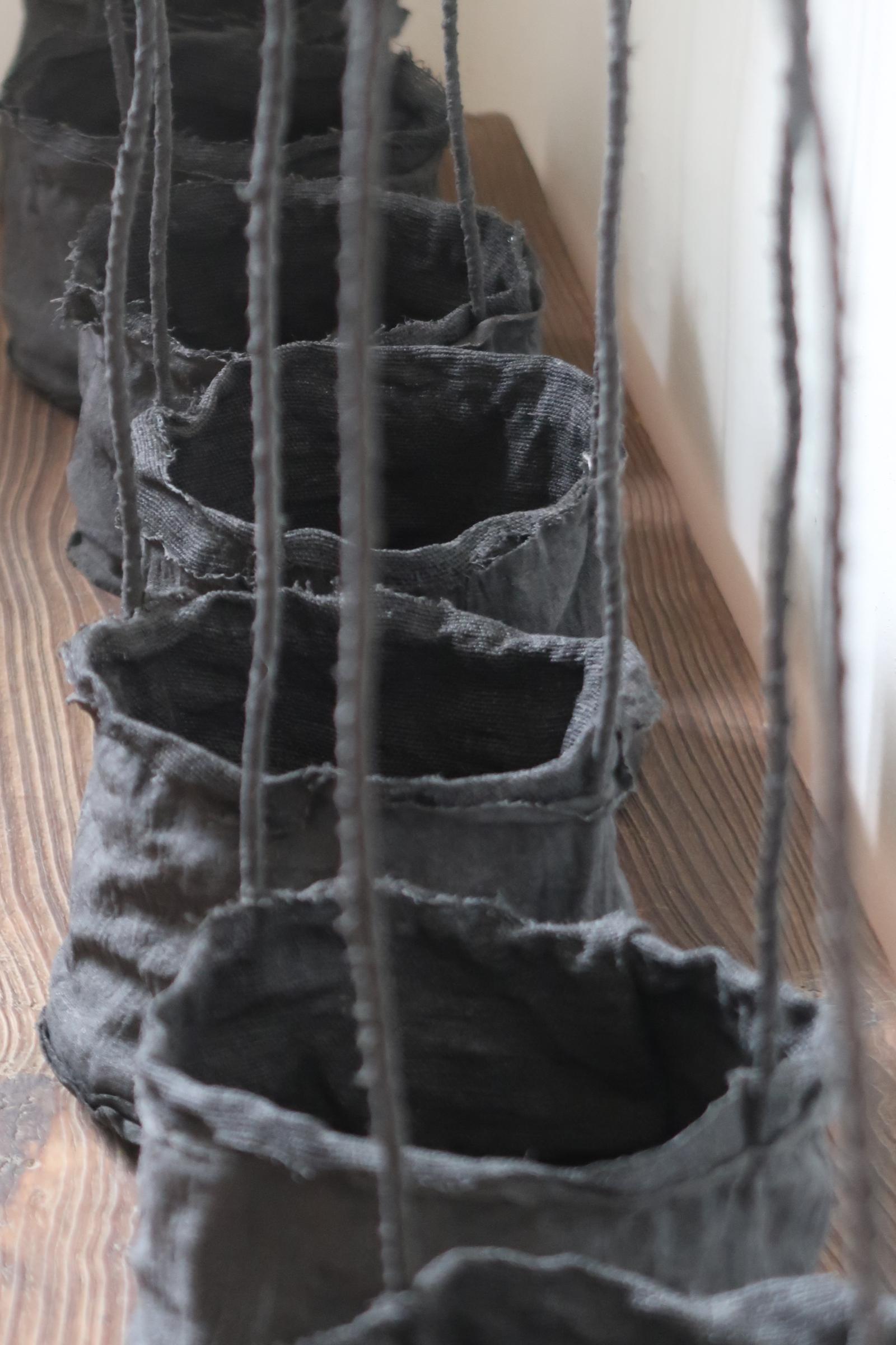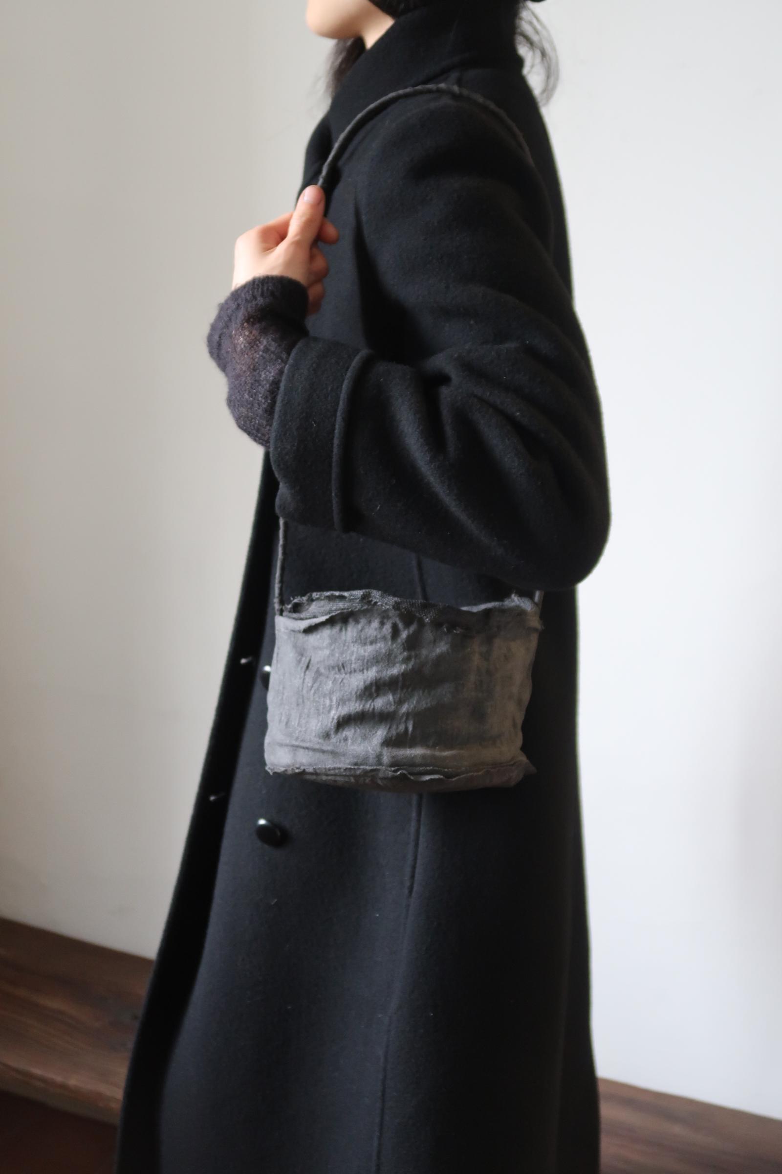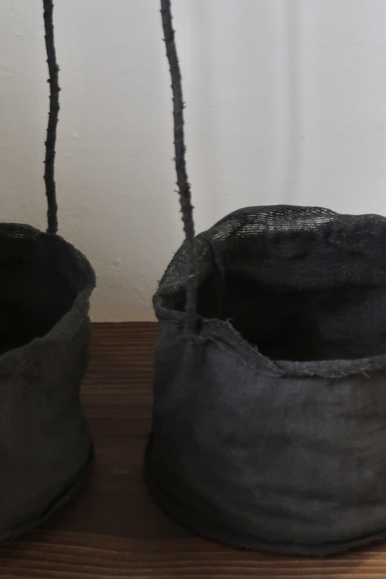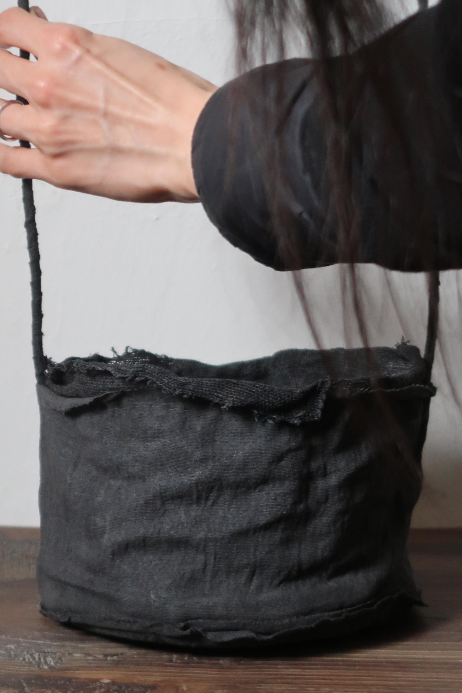 겉면과 안감을 이루는 면과 삼베를 여러 차례 먹염(墨染)해 색을 쌓고, 감물염으로 마무리한 분재 바구니입니다.