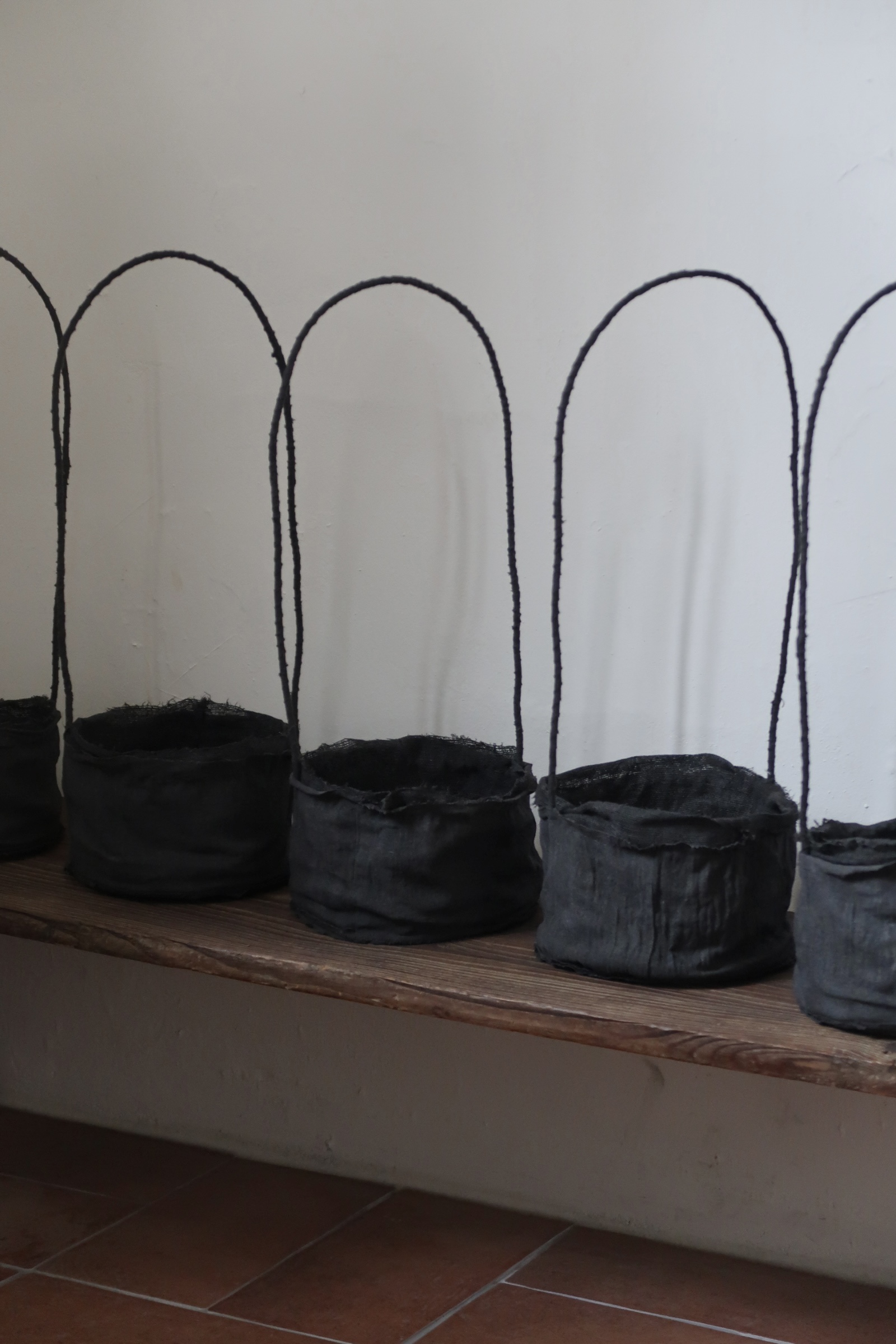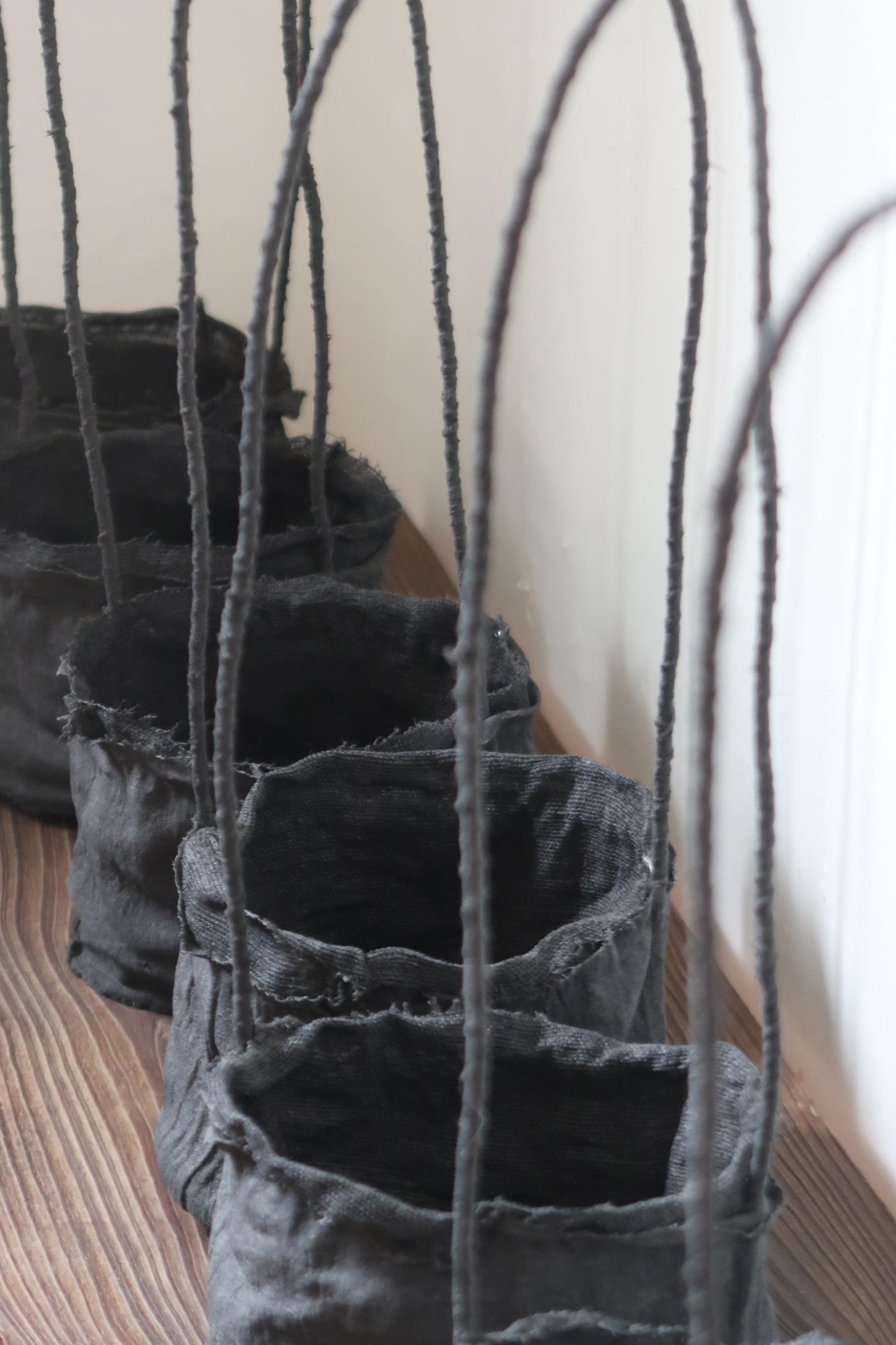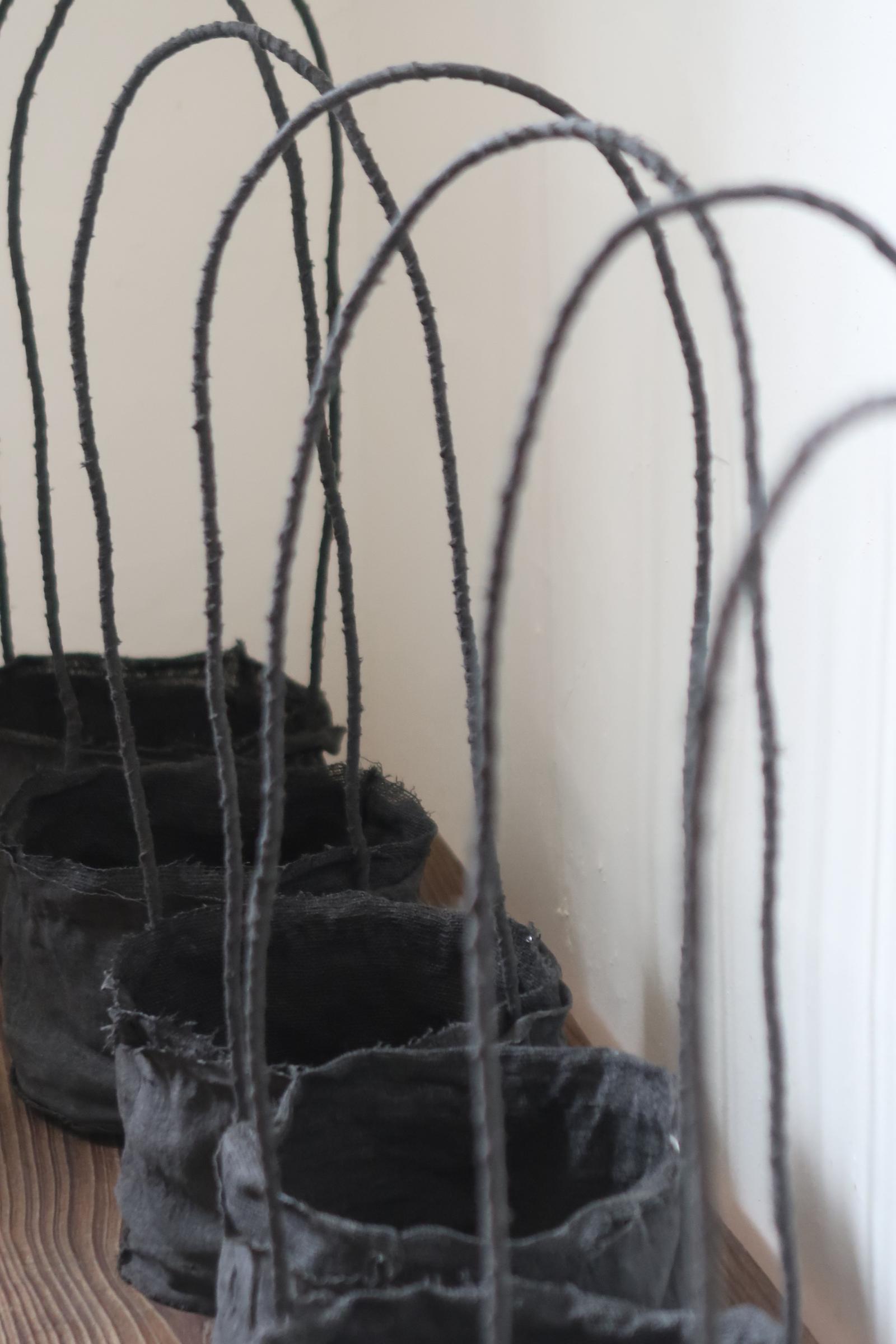 또한 무게감 있는 분재를 안정적으로 담기 위해 바닥면에 철사를 꼬아가며 골조를 만들고,